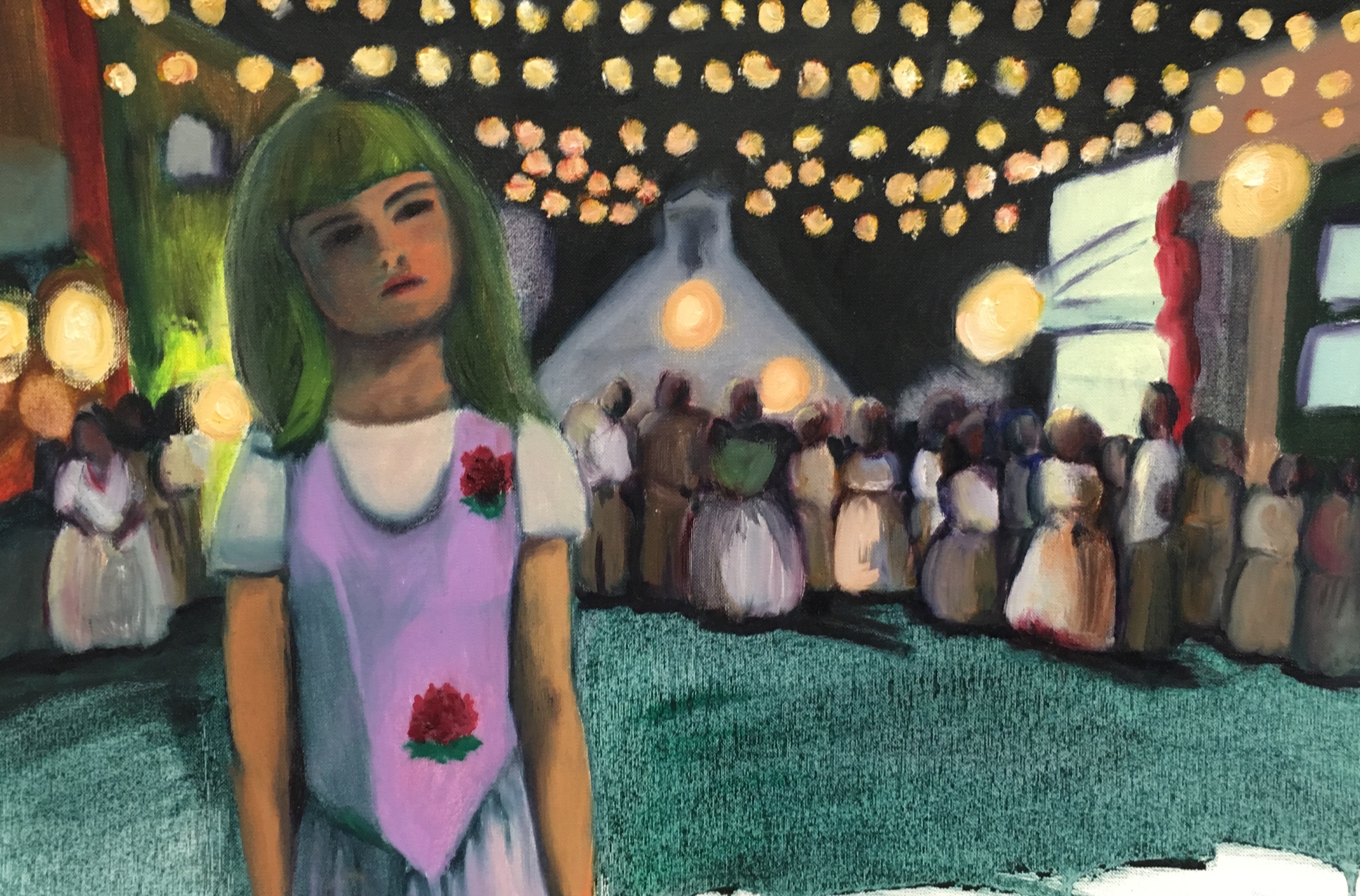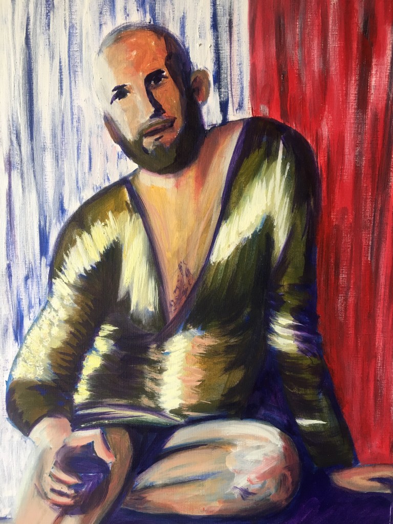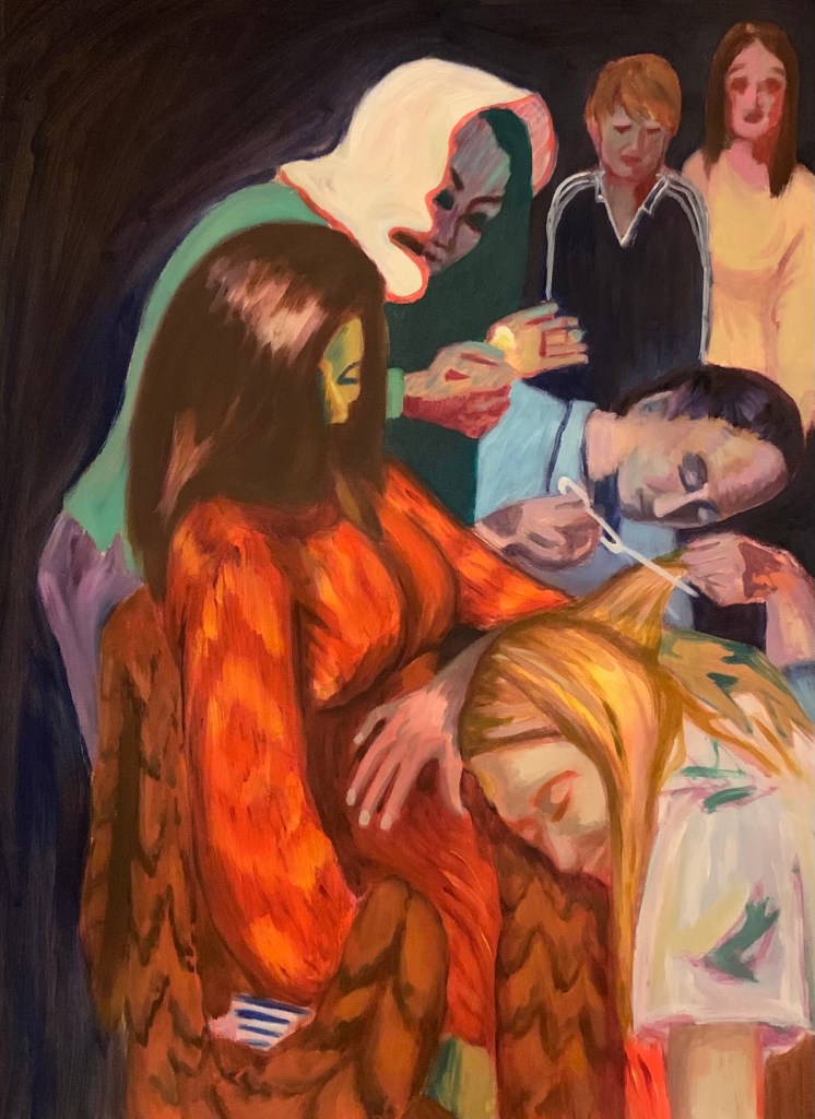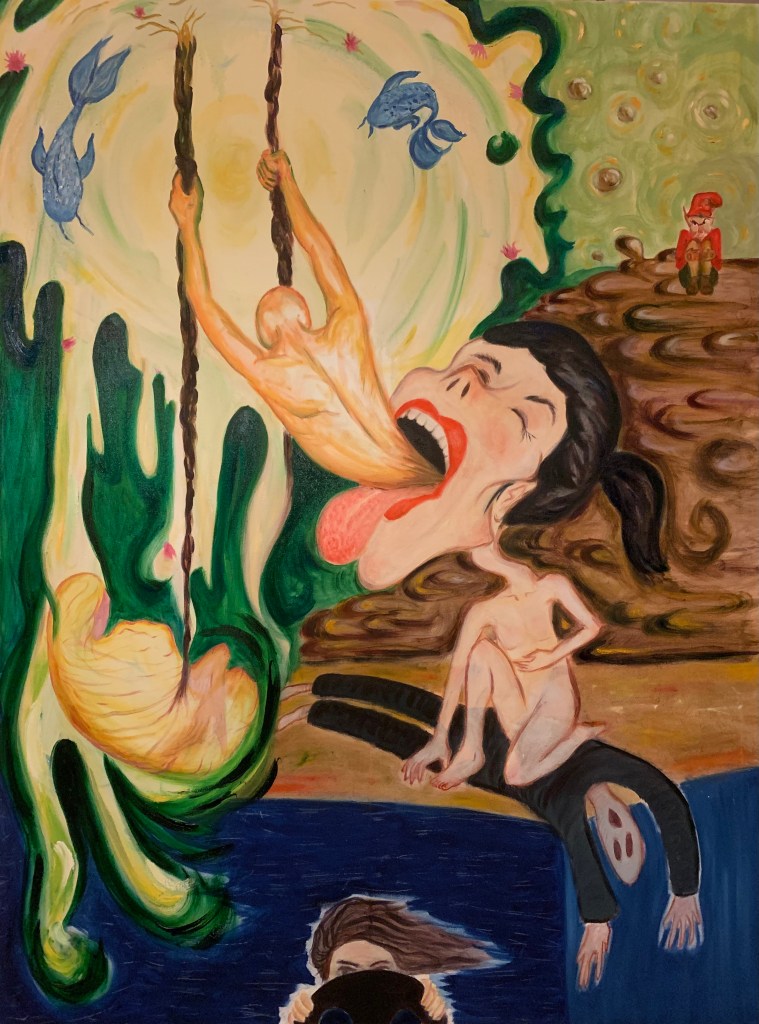 I like to paint stories, hopefully to inspire conversation. I use colour to represent emotions and states of mind, to differentiate worlds. My brushstroke is quick and fluid, to funnel my feelings onto the canvas and allow me to convey my narrative.