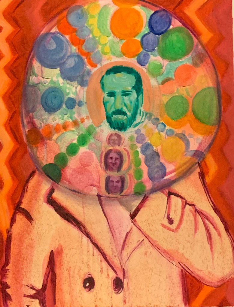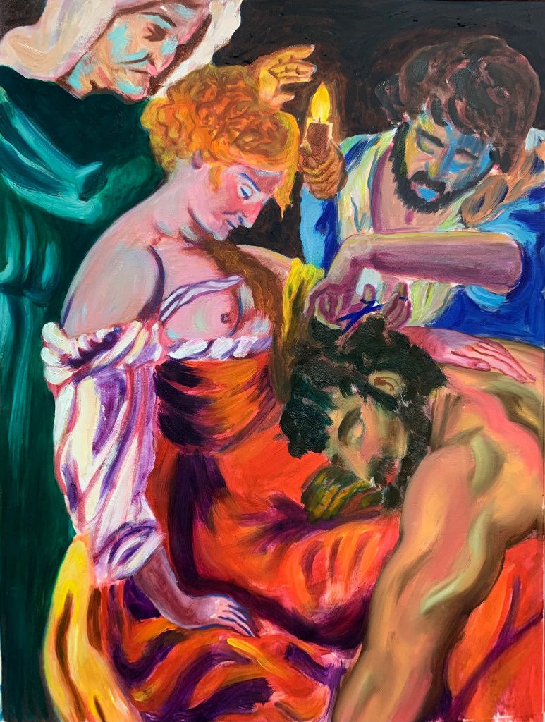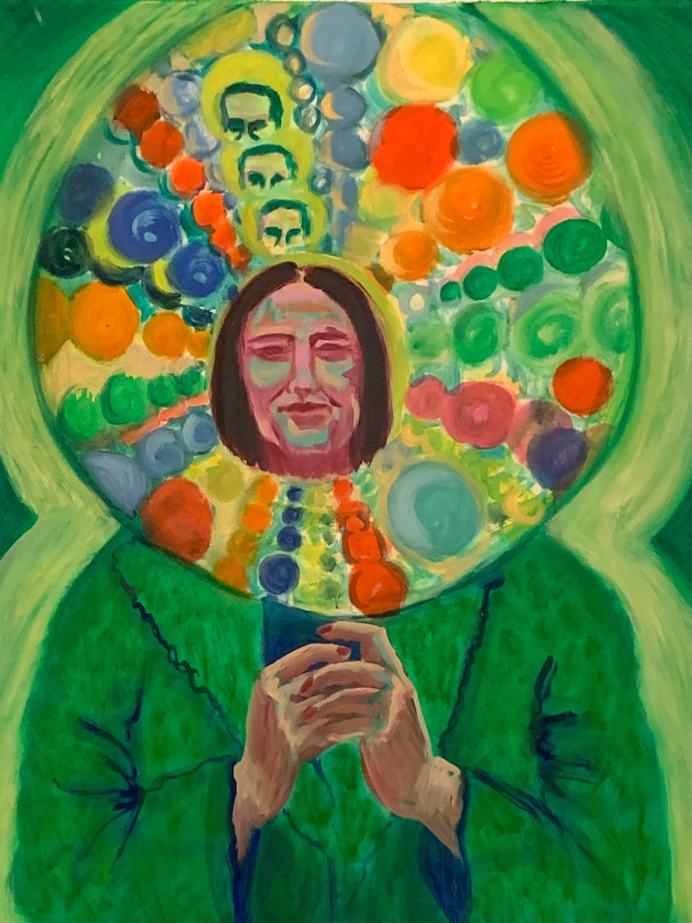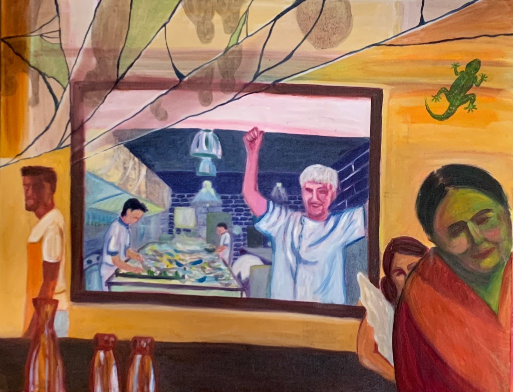 I like to paint stories, hopefully to inspire conversation. I use colour to represent emotions and states of mind, to differentiate worlds. My brushstroke is quick and fluid, to funnel my feelings onto the canvas and allow me to convey my narrative.
